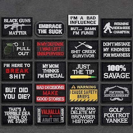 Amazon Com 20 Pack Tactical Morale Patches Funny Military Patch Embroidery Army Badge Set For Backpack Hat Vest Kitchen Dining